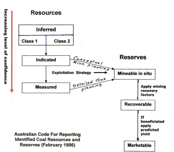 وأصدرت لجنة JORC أول كود أسترالى له قوة التشريع عام 1989 ، ثم ألحقته بكراسة إرشادات عام 1990 .. وتم اعتبار هذا الكود كواحد من أهم المراجع المعتبرة بالنسبة لجمعية مهندسى المناجم الأمريكية SME ، ووكذلك بالنسبة للجنة احتياطى الخامات بمعهد المناجم والفلزات بكندا CIMM . وفى يونيو عام 1993 أدخلت JORC بعض الإضافات والتعديلات بناءا على طلب البورصة الأسترالية ... إلى أن وصل كود JORC إلى إصدار عام 2004 الذى سرى مفعوله اعتبارا من ديسمبر عام 2004 ، وحل بذلك محل كل الإصدارات السابقة عليه . ولاقى هذا الكود انتشارا وقبولا واسعا على مستوى العالم ، وأصبح ماتضمنه من تعاريف ومصطلحات وتصانيف لفئات احتياطى الخامات ومواردها معترفا به على المستوى العالمى ، وأخذت به كثيرا من الدول مثل كندا والولايات المتحدة الأمريكية وجنوب أفريقيا والمملكة المتحدة ، ووضعته كما هو فى إصداراتها أو بعد تعديلات بسيطة عليه لاتؤثر على جوهره ، واعتمده كذلك الإتحاد الأوروبى كمرجع استرشادى عندما أصدر كوده الموحد .. وأصبح بذلك كود JORC كودا عالميا .. حتى أن روسيا الإتحادية التى تمسكت بنظامها وطريقتها فى توصيف وتصنيف فئات احتياطى الخامات المتبع منذ ستينيات القرن الماضى ، ورغم عدم توافقه كليا منذ النظرة الأولى مع الكود الأسترالى الذى أصبح يعرف بالنظام الغربى ،  اضطرت رغم تمسكها بنظامها إلى عمل توافيق مكافئة وبشكل إجمالى   بين تسميات الفئات بنظامها الخاص وبين تسميات النظام الغربى بغرض التعامل مع المستثمرين الأجانب فى صناعة التعدين كما يتضح من الشكل التالى :