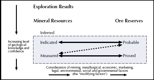 General relationship between Exploration Results, Mineral Resources and Ore Reserves