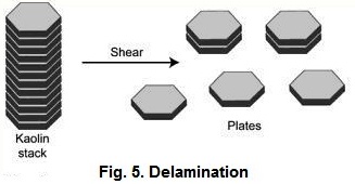 : Delamination is the grinding or cleaving of kaolinite stacks into finer platy
