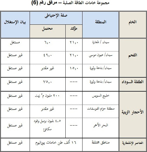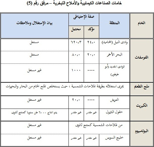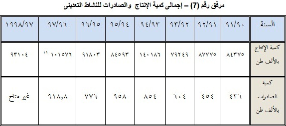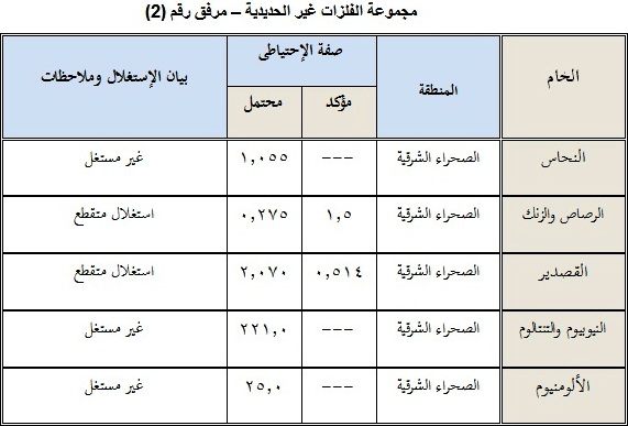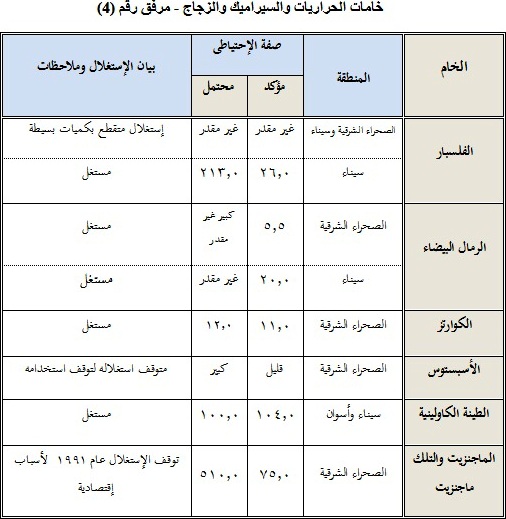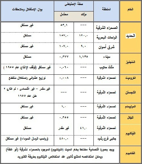 المصدر : عاطف هلال / الموارد المعدنية وآفاق تنميتها حتى عام 2020 / الناشر: المكتبة الأكاديمية يناير 2000 .