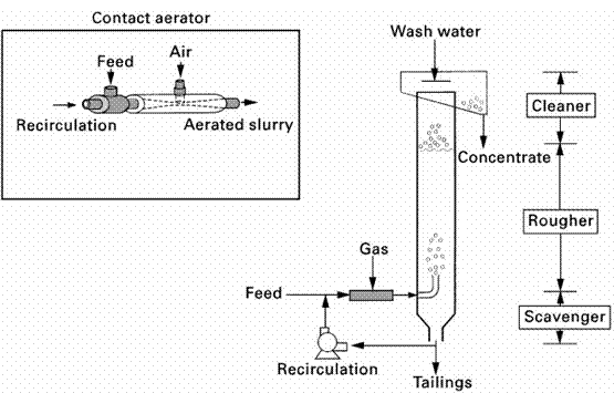 aeration (insert) and partial recycle of tailings. The main thrust of a column